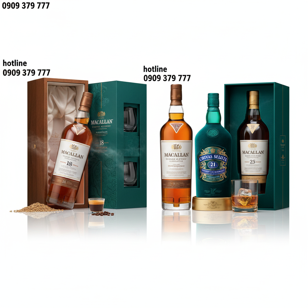 Dòng Whisky Blended: Chivas Regal (18, 21, 25, 38 năm), Johnnie Walker (Blue Label, các bản kỷ niệm), Royal Salute.